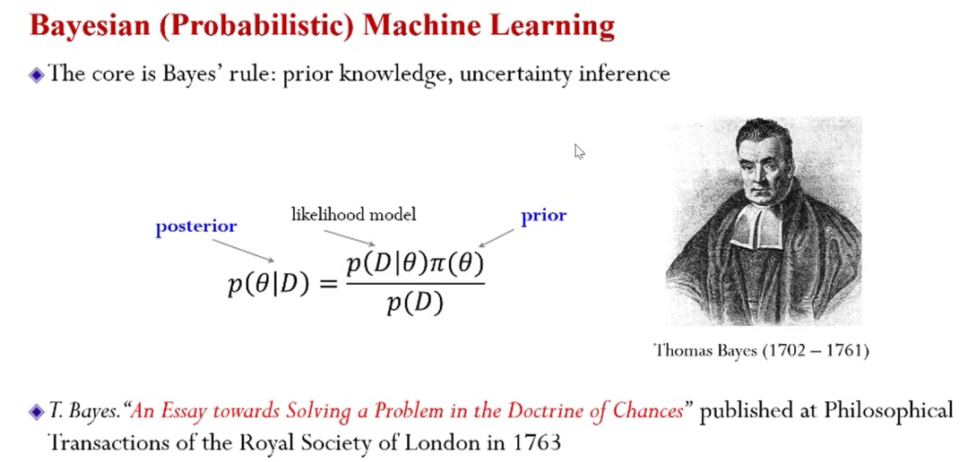 上述“联想”的过程可以用贝叶斯建模,通过定义联合分布,运用贝叶斯公式,可以得到在给定输入特征(X)的情况下得到“标签(Y)”的后验分布(编者注:像不像高数中的条件概率公式☺),有了后验分布然后就可以做称作贝叶斯决策的最优决策。