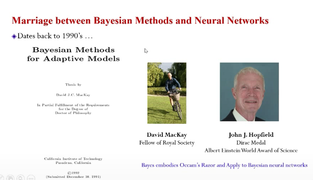 贝叶斯方法和深度学习方法的“联姻”可以追溯到上世纪90年代的甚至更早,当时大家主要研究的是如何用贝叶斯方法进行神经网络的计算,或者进行神经网络结构的选择。当时面临的困难和主要问题是数据缺乏和计算能力不足,所以很多神经网络训练的深度非常的浅。